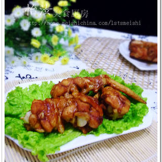 原料:鸡翅根、姜、小个葱头、盐、大喜大烤肉料、蜂蜜。