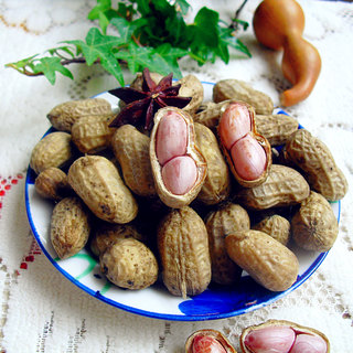 原料:新鲜花生、八角、姜片、红辣椒、花椒、盐。
