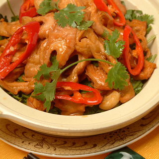 原料:白菜帮、猪里脊肉、精盐、植物油、料酒、酱油、花椒、干红椒、生姜、大葱、食醋、白糖。