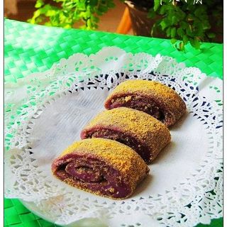 原料:糯米粉、紫薯泥、橄榄油、蜂蜜、水、黄豆粉、黑芝麻、去皮熟花生。