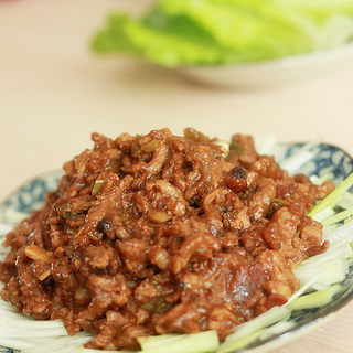 原料:猪肉丝、甜面酱、生菜、大葱、生粉。