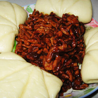 原料:猪肉、面粉、大葱、酵母、泡打粉、清水、淀粉、食用油、料酒、黄豆酱、甜面酱、番茄酱、蚝油、白糖。