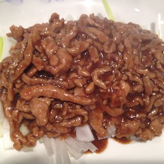 原料:猪里脊肉、蛋清、京葱、盐、姜丝、绍兴黄酒、甜面酱、冰糖。