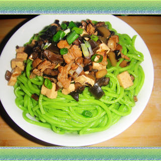 原料:榛蘑、黑木耳、五花肉、菠菜面、长茄子、豆腐、香葱、蒜、油、盐、花椒面、醋、酱油、水。