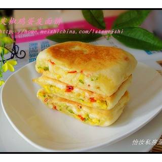 原料:面粉、青红尖椒、鸡蛋、小葱、酵母、盐、鸡精。