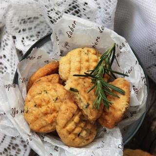原料:新鲜迷迭香、糖粉、低筋面粉、全麦面粉、无盐黄油、蛋白、小苏打。