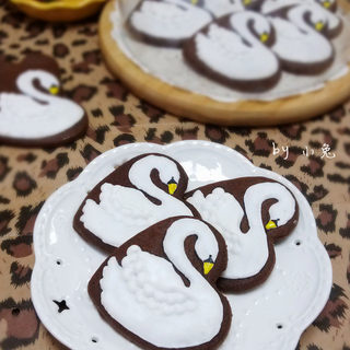 原料:低筋面粉、黄油、糖粉、黑巧克力、可可粉、蛋液、盐、黑色食用色素、黄色食用色素、蛋白、糖粉、玉米糖浆。