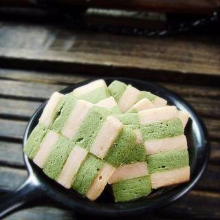 原料:低粉、黄油、草莓粉、抹茶粉、糖粉、全蛋液。