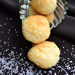 原料:低筋面粉、奶酪芝士、蛋清、糖粉、黄油、芝士粉、泡打粉。