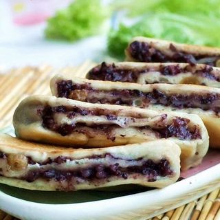 原料:发酵面团、熟黑米、萄萄干、糖。