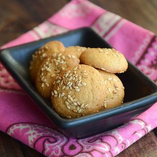 原料:低筋面粉、黄油、鸡蛋、细砂糖、红糖、小苏打、熟白芝麻。
