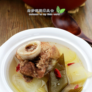 原料:猪后腿骨、裙带梗、冬瓜、盐。