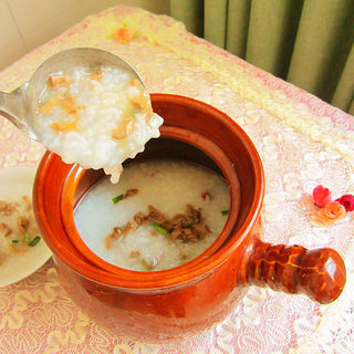 原料:香米、鱼肉、猪肝、香葱、精盐、食用油、调味鱼。