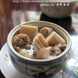 原料:猪尾骨、莲藕、生姜、盐。