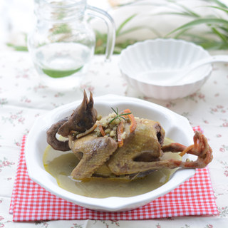 原料:鸽子、里脊肉、绿豆、生姜、陈皮、盐巴。
