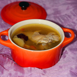 原料:老母鸡、黄芪、大红枣、枸杞、姜、盐。