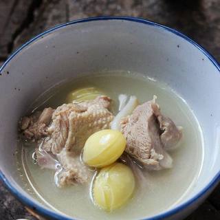 原料:鸭肉、白果、陈皮、老姜、葱段、盐。