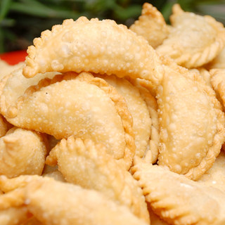 原料:饺子皮、黑芝麻、熟米粉、花生碎、白糖。