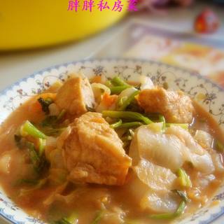 原料:西红柿、白菜、藕盒、菠菜梗、葱、姜、蒜、花生油、盐、味精、香油、白糖。