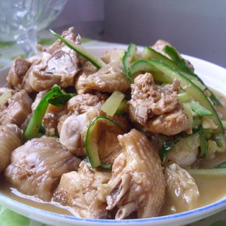 原料:鸡肉、青瓜、蒜、蒜头、姜、沙茶酱、酱油、料酒、白醋、盐。