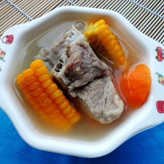 原料:猪骨、胡萝卜、玉米、生姜、大葱、食盐、鸡精。