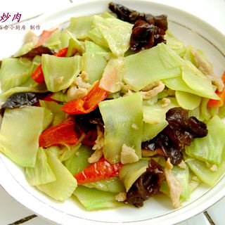 原料:莴苣、猪肉丝、青红椒、木耳、葱、姜。