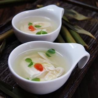 原料:春笋、清鸡汤、鸡腿菇、盐。