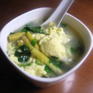 原料:竹笋、鸡蛋、虾米、香菜、盐、油、料酒、鸡精。