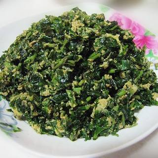 原料:枸杞芽、鸡蛋、大豆油、盐。