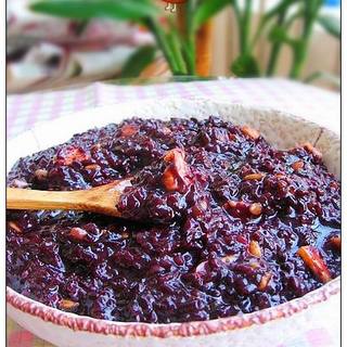 原料:黑米、糯米、蜜枣、大杏仁、核桃仁、瓜子仁、软糖、糖、橄榄油。