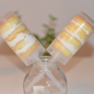 原料:低筋面粉、鸡蛋、细砂糖(蛋清里)、细砂糖(牛奶里)、泡打粉、牛奶、色拉油、奶油、细砂糖(奶油里)。