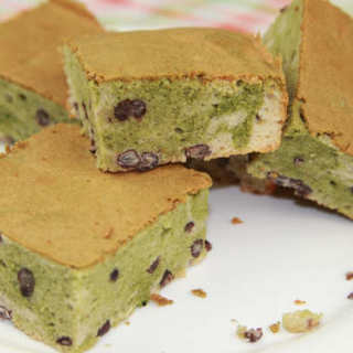 原料:高筋面粉、玉米淀粉、泡打粉、色拉油、牛奶、蜂蜜、抹茶粉、水、蛋白、细砂糖、蜜豆。