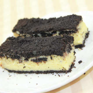 原料:黄油、奥利奥饼干屑、奶油奶酪、细砂糖、淡奶油、低筋面粉、蛋黄、奥利奥饼干块。
