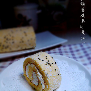 原料:鸡蛋、低粉、细砂糖、牛奶、色拉油、淡奶油、黑芝麻、椰蓉。