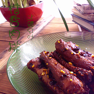 原料:肉排、桔皮丁、油、蜂蜜、生抽、盐、蚝油、鸡粉。