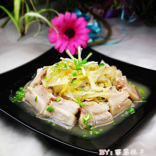 原料:东北酸白菜、五花肉、粉丝、葱姜、盐、胡椒粉、鸡精、香油、八角。