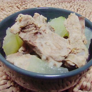 原料:冬瓜、排骨、葱、姜、八角、盐。