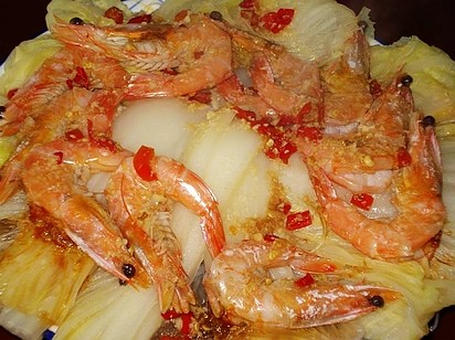原料:大白菜、粉丝、熟虾、葱、剁椒、蒜蓉酱、蚝油、盐、糖、料酒、蒸鱼豉油、生抽。