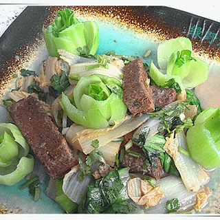 原料:素冒、白菜芯儿、油菜、香菜、姜。