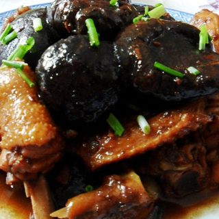 原料:香菇、小鸡、葱、姜、食用油、料酒、蒜瓣、醋、老抽、八角、盐、糖。