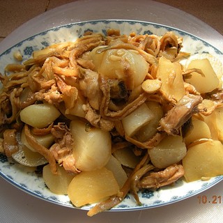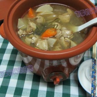 原料:鸡块、萝卜、萝卜干、姜、蒜、生抽、八角。