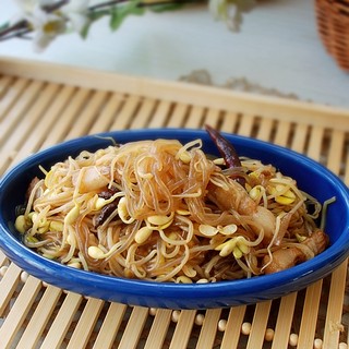 原料:黄豆芽、粉丝、五花肉、大茴、花生油。