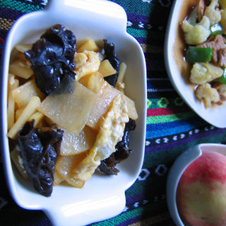 原料:土豆、鸡蛋、黑木耳、鸡汁、盐、胡椒粉、料酒、生抽。
