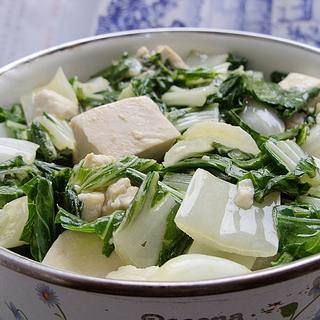 原料:白梗菜、豆腐、姜、蒜、食用油、盐。