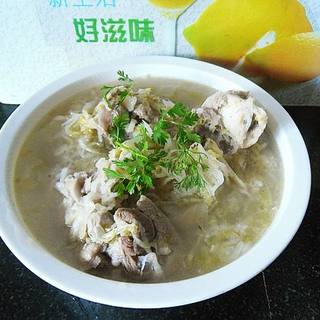 原料:棒骨、酸菜、葱姜、盐、味精。