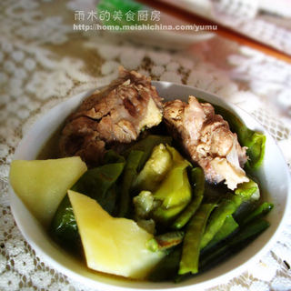 原料:脊骨、茄子、尖椒、豇豆、土豆。
