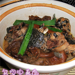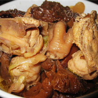 原料:乌鸡、野蘑菇、蒜、姜、大料、油、盐、酱油、料酒。