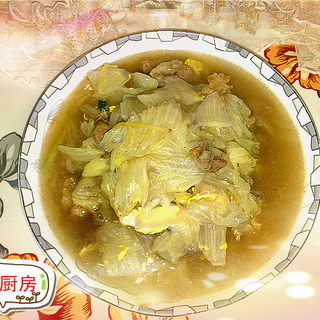 原料:猪肉、白菜、油、葱丝、姜丝。