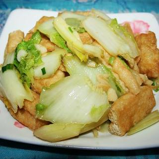 原料:白菜、油豆腐、蒜、葱、盐、油、鸡精。