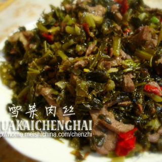 原料:雪菜、猪肉、姜、葱、干辣椒。